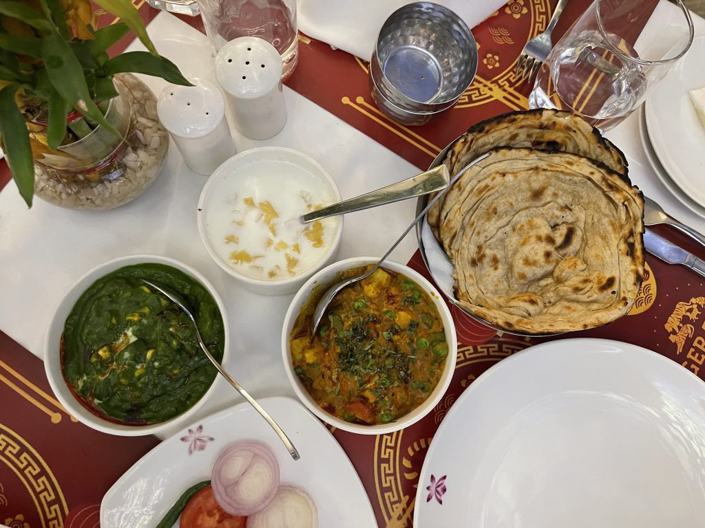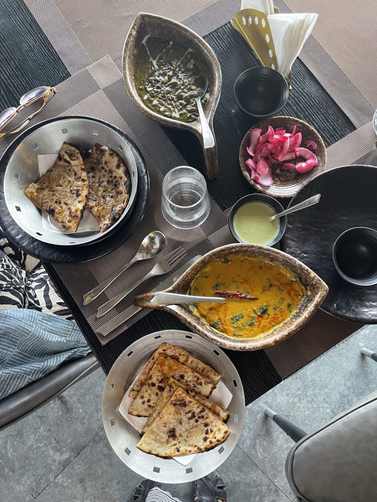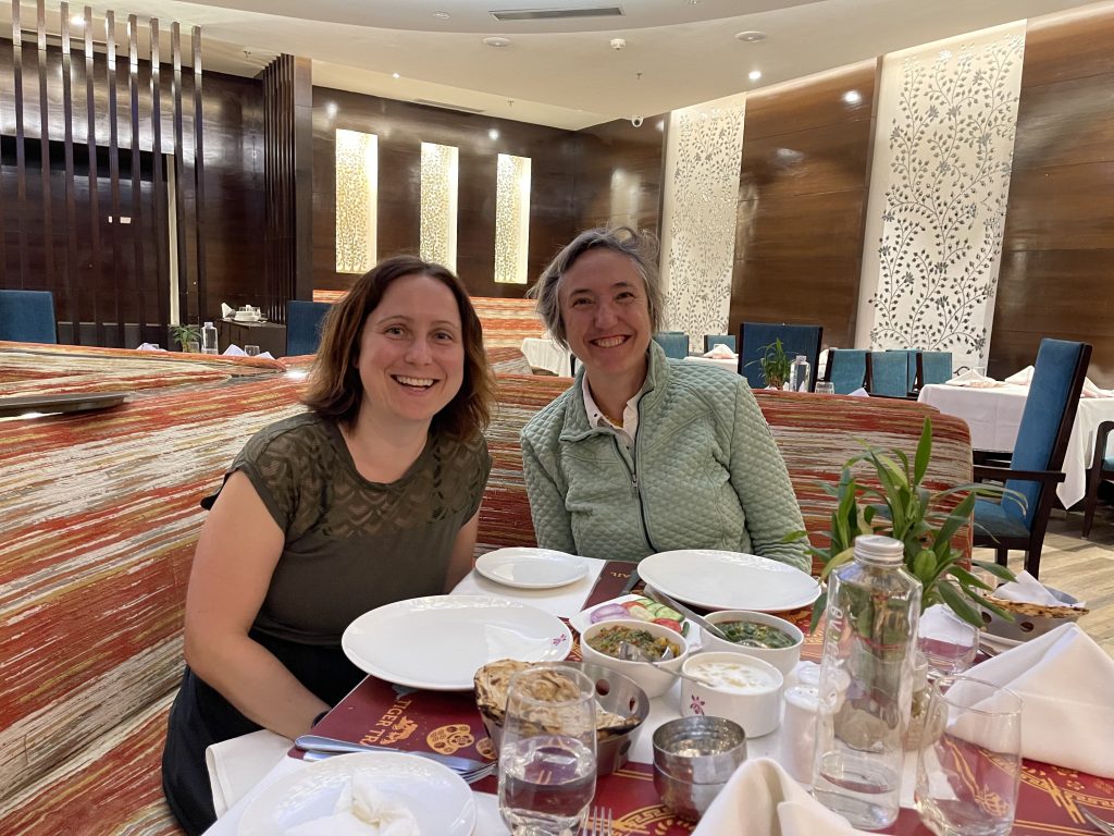 Das Essen in Indien werde ich in ganz besonderer Erinnerung behalten. Es ist so anders als in Europa und sehr geprägt von den Gewürzen des Landes. Viele Inder sind Vergatarier und die meisten der Hotels und Restaurants haben keinen Alkohol. So wird mir bewusst, welche Rolle Alkohol eigentlich in Europa spielt mit vielen sehr negativen Auswirkungen. Viele Inder benutzen kein Besteck, sondern essen mit den Fingern und schieben sich das Essen mit dem Brot in den Mund. Es dauert eine Weile bis wir die Gerichte und Brote auseinanderhalten können. Es schmeckt immer wieder sehr, sehr lecker. Streetfood meiden wir, ebenso ungeschälte oder ungekochte Gerichte. Trotzdem haben wir beiden mehrmals starken Durchfall. Die indische Familie isst dreimal pro Tag warm. Sicherlich köcheln in jeder indischen Familie die Töpfe Tag und Nacht vor sich hin. Milchprodukte gibt es wenige. Paneer, ein indischer Käse, Jogurt als Beilage, Milch im Tee und Lassi. Eier werden kaum verwendet. Dafür Linsen, Reis, Kartoffeln, Gemüse und natürlich Gewürze. Zurück in Deutschland nehme ich mir vor, die indische Küche häufiger zu kochen.