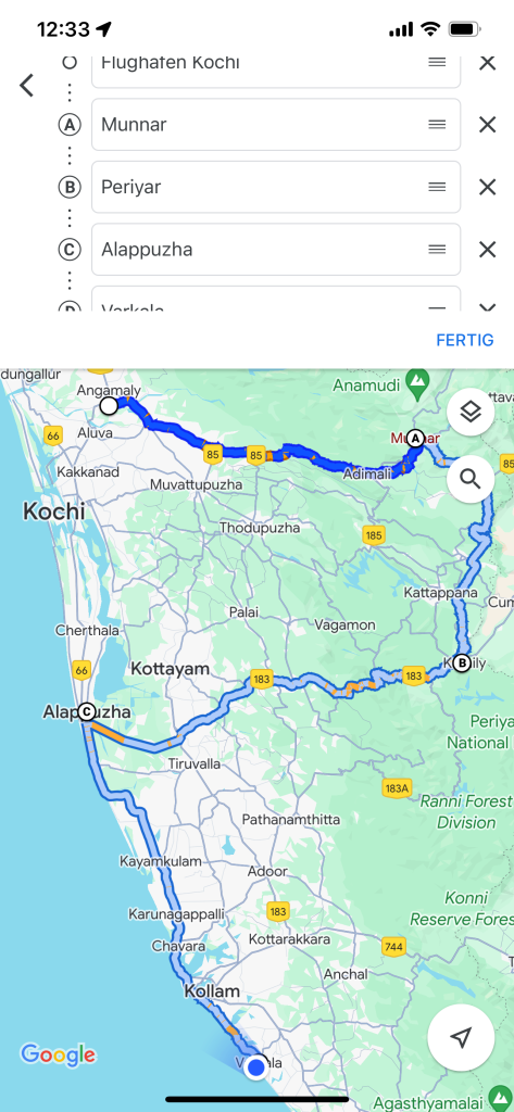 Gemeinsam mit Natalie fliegen ich Anfang Februar nach Indien, um dort mit Kiran und ihren Eltern Urlaub in Kerala zu machen. Kiran kenne ich von der Arbeit in Fremont, Kalifornien. Ihre Eltern leben in Bangalore. Die ersten 10 Tahe verbringen wir in Kerala im Südwesten. Dann fliegen wir beiden in den Norden nach Jaipur, Agra und Neu Delhi. Von dort wieder zurück nach Deutschland.