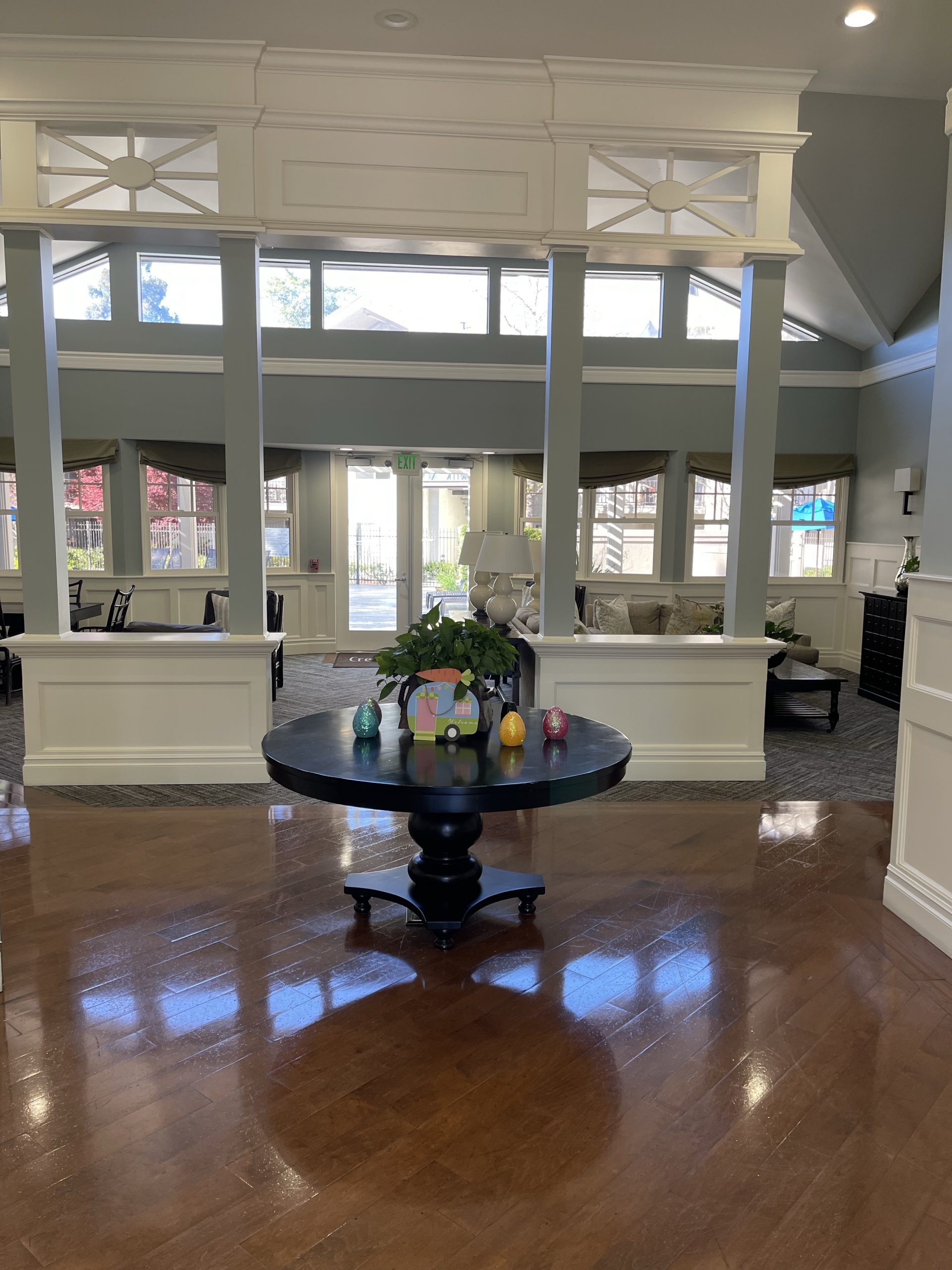 Am 19.03. ziehe ich nach gut 2 Wochen im Hotel in mein möbliertes Appartment in Creek Sie Village. Dieses „village“ ist eine Appartmentanlage ca. 8 km entfernt von der Arbeit und schnell erreichbar ohne Staus. Die Anlage besteht aus 2 geschössigen Häusern. Wie typisch hier sind die Treppen draußen und man kommt vom offenen Treppenhaus in die Wohnung. Die Anlage hat 2 Swimmingpools, einen Spielplatz, Parkplätze und viele Bäume und Sträucher. Es gibt auch eine Rezeption und einen Fitnessraum. In diesem Land trifft Moderne auf Altes. Die Amerikaner haben Kreditkarten, kein Bargeld, dafür Scheckhefte mit Papierschecks, um zum Beispiel die Miete zu bezahlen. Meine Adresse lautet: