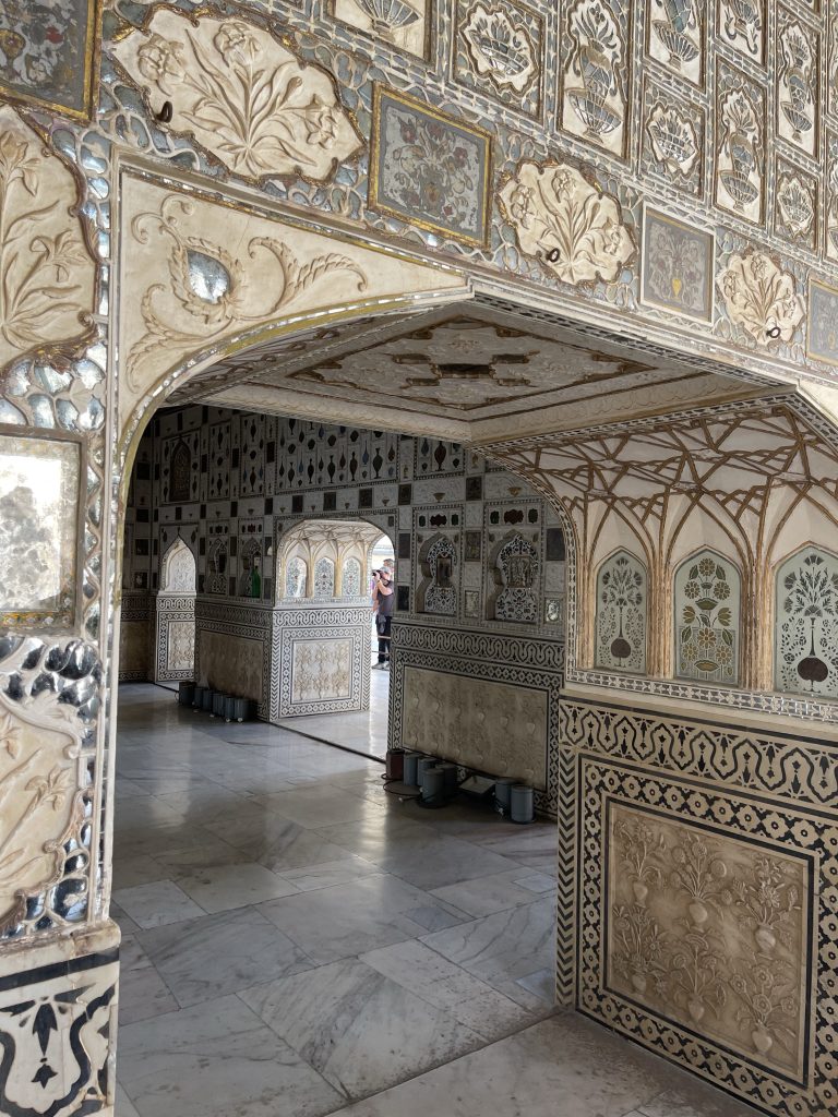 Mit einem Elefantenritt erklimmen wir das Fort. Wir besichtigen die Außenanlage und die aufwendig verzierten Innenräume. Leider auch hier wieder keine Möbel, Teppiche oder andere Einrichtungsgegenstände. Wir erfahren von unserem Führer, dass sich davon viel in London oder New York befindet. Ein schweres Erbe der Kolonialherrschaft, die 1947 friedlich endete und das heutige Indien entstand.