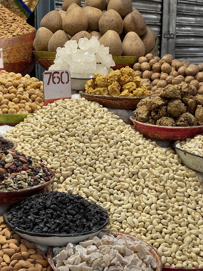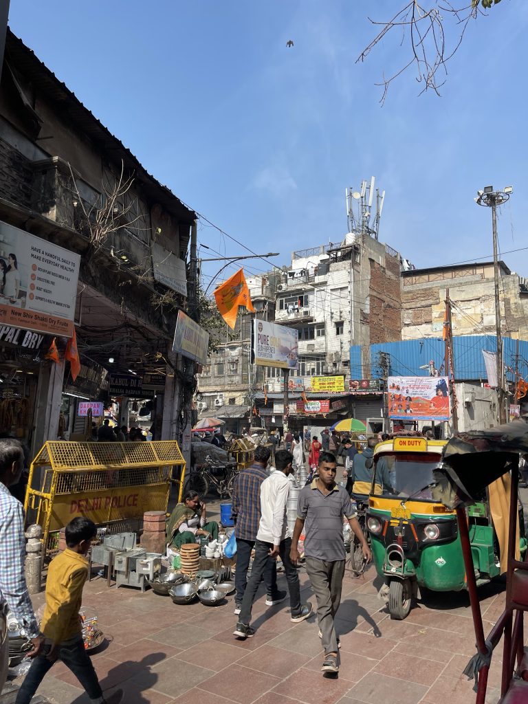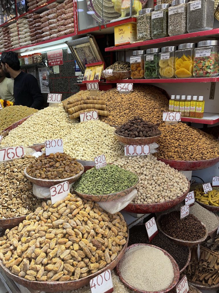 Wir haben nur einen Tag in Delhi und machen einen Streifzug durch die Kulturen. Wir starten am India Gate, errichtet von den Engländern nach Pariser Vorbild. Hier finden sich prächtige Alleen, viele, große Kreisel und eine sehr großzügige Bauweise mit viel Grün. Dann besuchen wir einen Gewürzmarkt in Old Delhi und werden von Gerüchen, Geräuschen und Farben überwältigt. Wir nehmen eine Fahrrad-Rikscha.