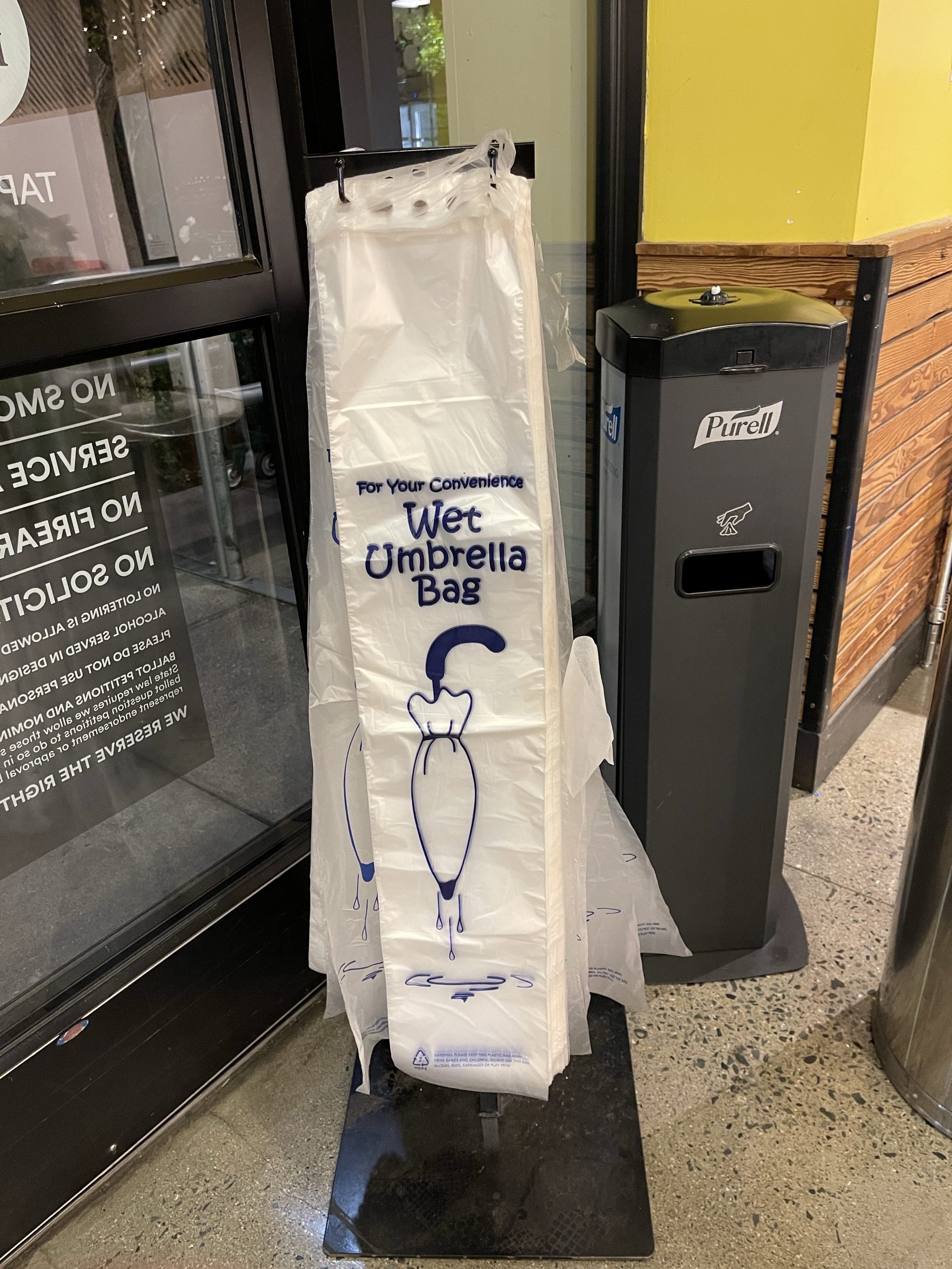 Der umbrella bag unten zeigt ein wenig, dass Regen hier eher ein Ausnahmezustand ist. Auch kommt regelmäßig der Hinweis, bei Regen vorsichtig zu fahren. What is the problem here? Fragt sich ein Deutscher.