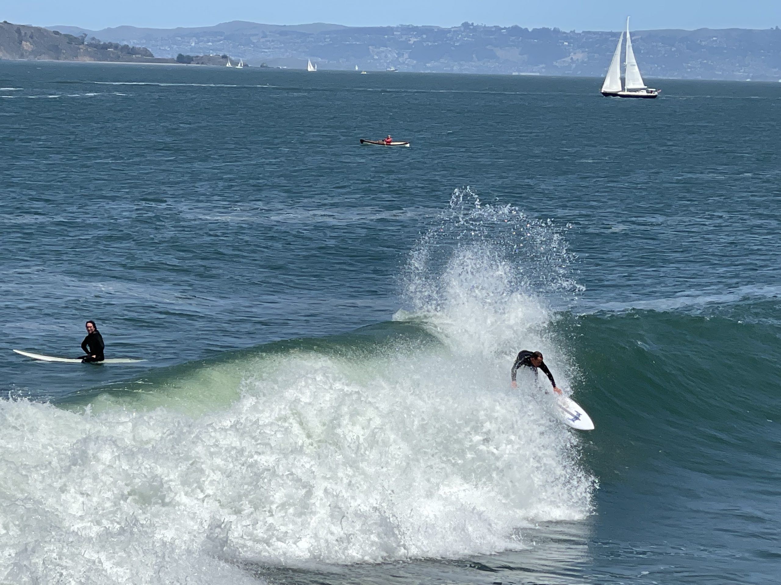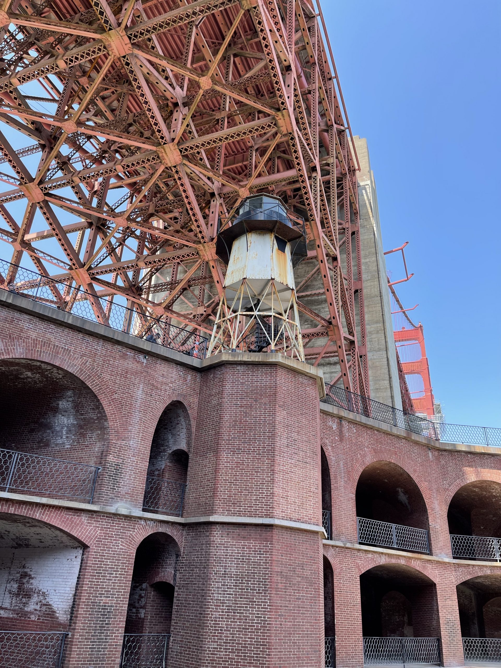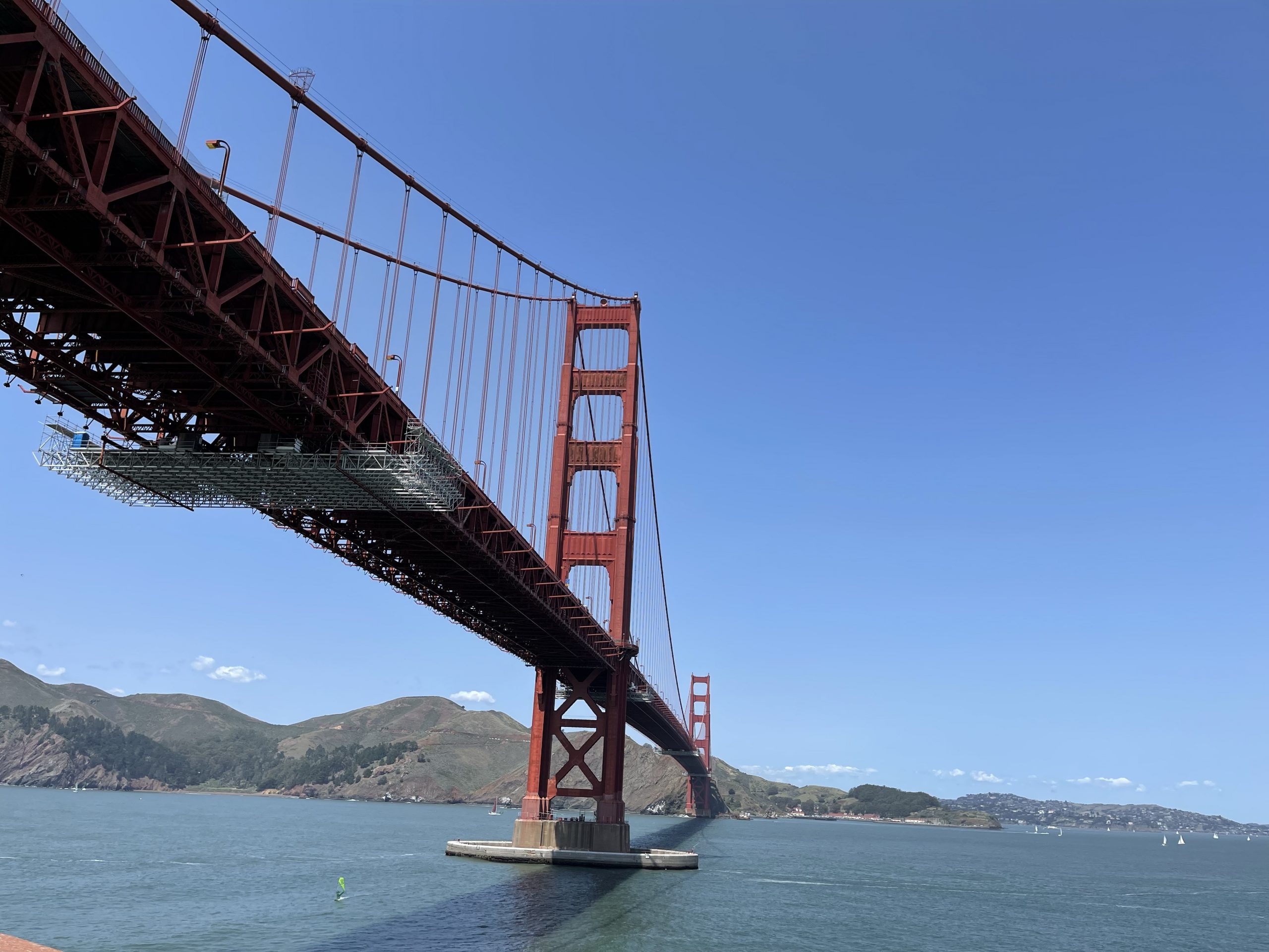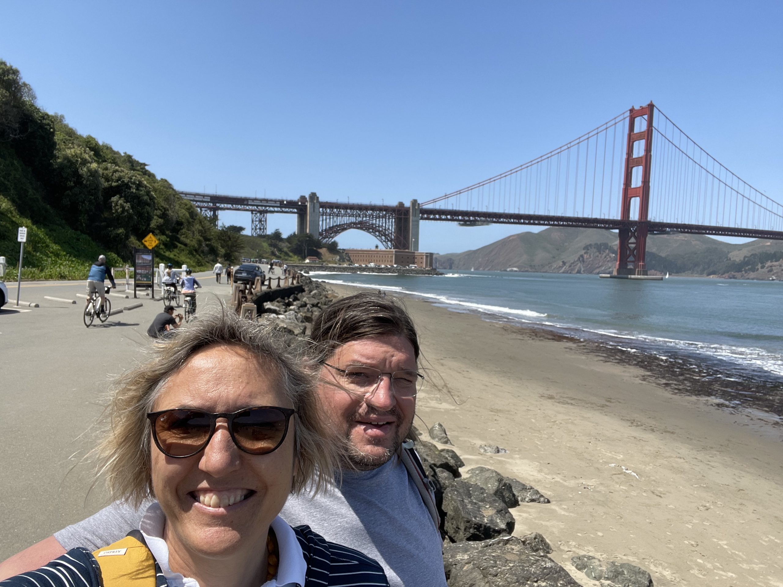 Dag und ich verbringen einen Tag an der Küste in der Nähe der Golden Gate Bridge. Hier reihen sich Yachthäfen, Sandstrände und Promenaden aneinander, beliebt bei den Einheimischen zum Radfahren, spazieren gehen und picknicken. Surfer und Segler gibt es auch. Wir nähern uns der Brücke, die immer wieder aufs Neue durch ihre Konstruktion und Schönheit besticht. Wir haben Glück mit dem Wetter, kein Nebel und die Brücke leuchtet rot. Direkt unterhalb der Brücke befindet sich Fort Point, das wir betreten können.