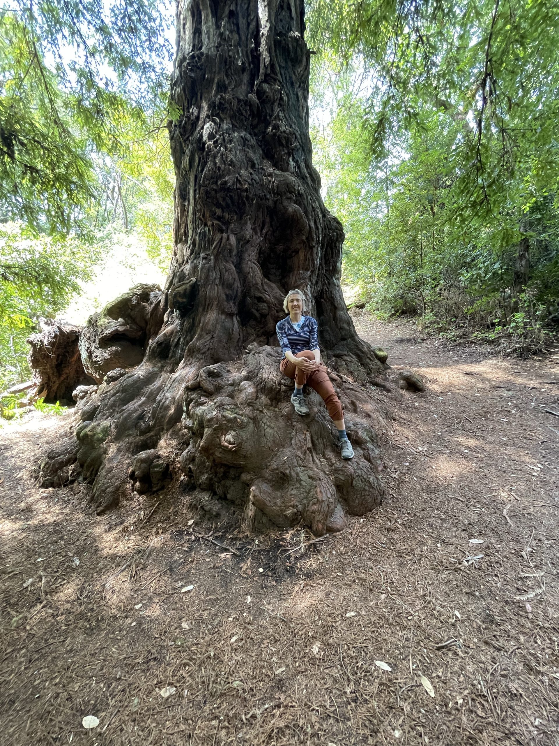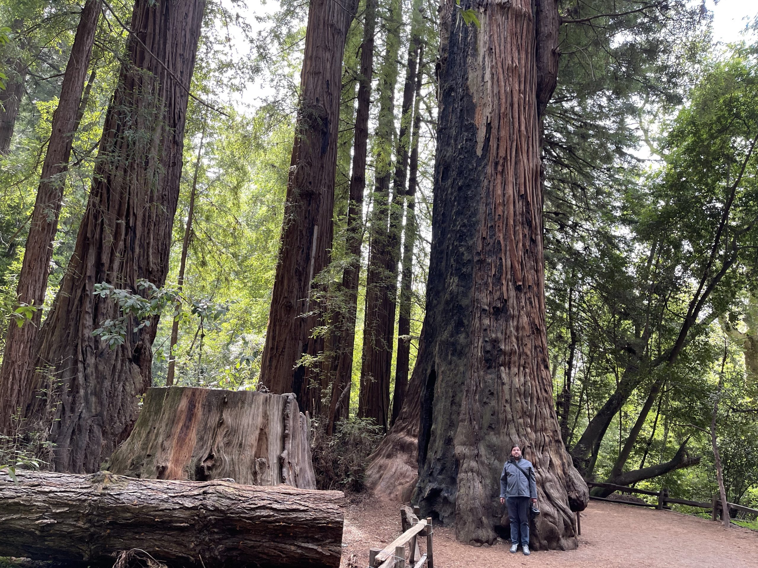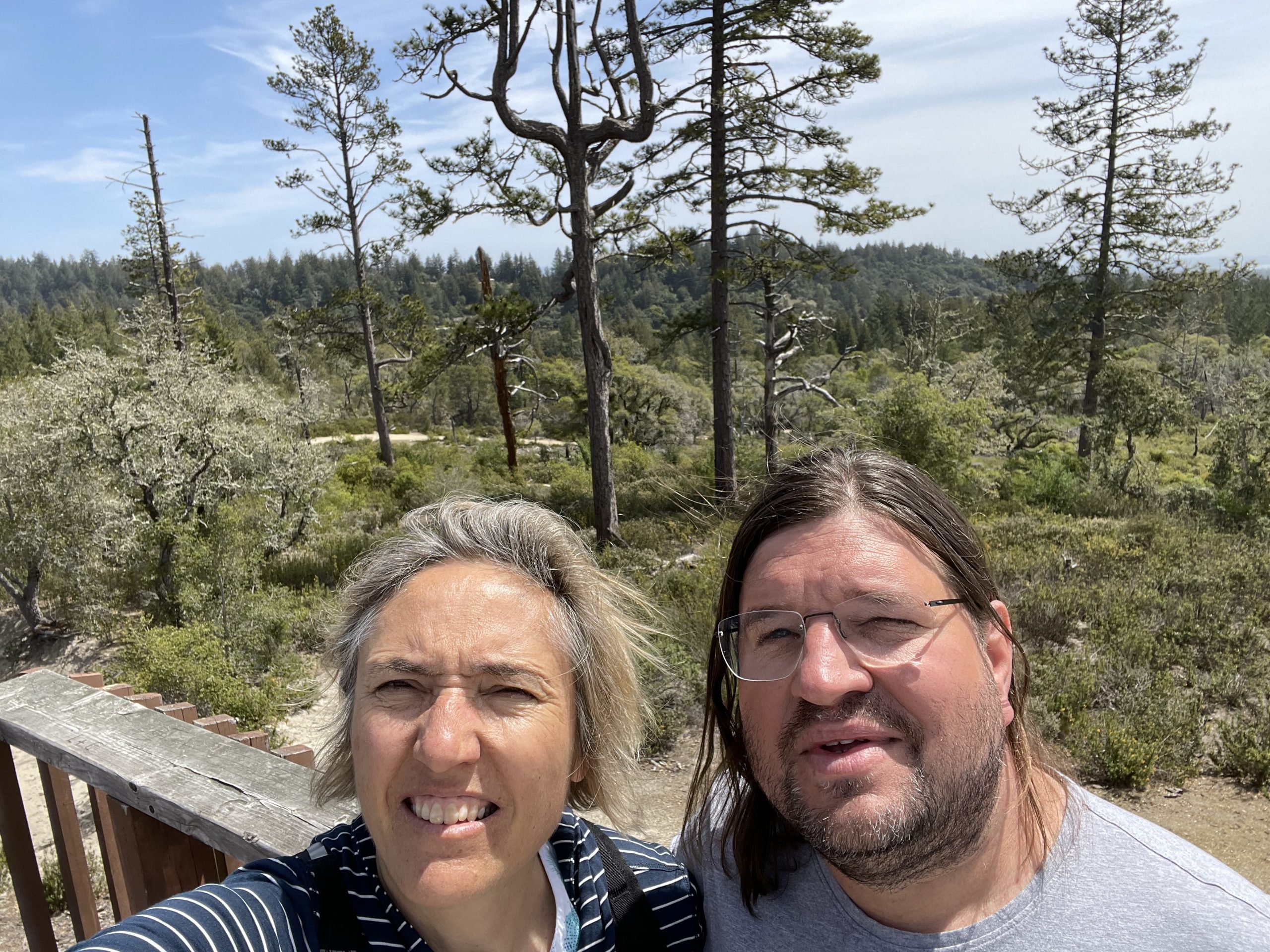 An meinem Geburtstag am 27. April waren wir in diesem State Park in der Nähe von Santa Cruz, also nicht weit vom Pazifik und ca. 1 h südlich von Fremont. Bevor wir die Wanderung beginnen, entdecken wir einen Dampfzug: Die Roaring Camp & Big Trees Railroad ist eine US-amerikanische Schmalspur-Museumseisenbahn, die über eine 5,25 km lange Steilstrecke durch den Mammutbaum-Wald den Gipfel des nahegelegenen Bear Mountain erklimmt. Dann beginnen wir die Wanderung: Redwoods, die bis zu 1400-1800 Jahr alt sind, einen Durchmesser bis zu 4.9 m haben und eine Höhe von 91 m. Giganten. Da sieht der „kleine“ Dag wie ein Spielzeug aus. So wandern wir durch den Wald und kommen unerwartet an eine Lichtung mit sandigem Untergrund und Sträuchern. Hier muss es gebrannt haben, da wir Baumskelette sehen, in denen unzählige Spechte hausen. Auf einer Aussichtsplatform finden wir heraus, dass wir uns auf einer ehemaligen Sanddüne befinden. Archeäologen haben hier Versteinerungen von Meerstieren und -muscheln gefinden. Wir sind fasniziert. Schon bald beginnt wieder der Wald, der diese Sanddüne umrandet. Im Anschluss an der Wanderung gehen wir noch in ein mexikanisches Restaurant in Santa Cruz, dort essen wir Enchiladas mit einer dunklen Mole-Schokoladensauce. Eine Spezialität aus der Stadt Oaxaca.