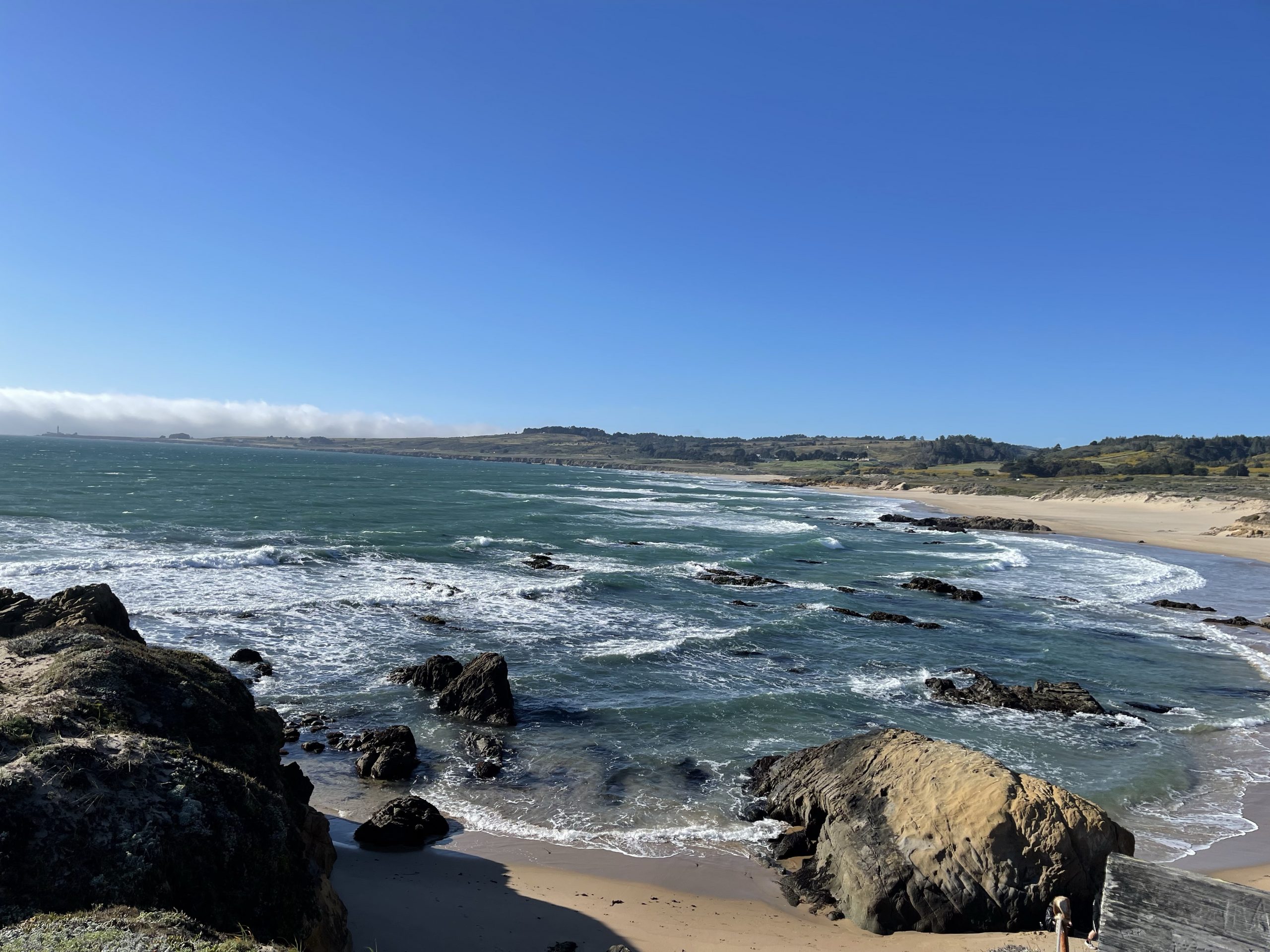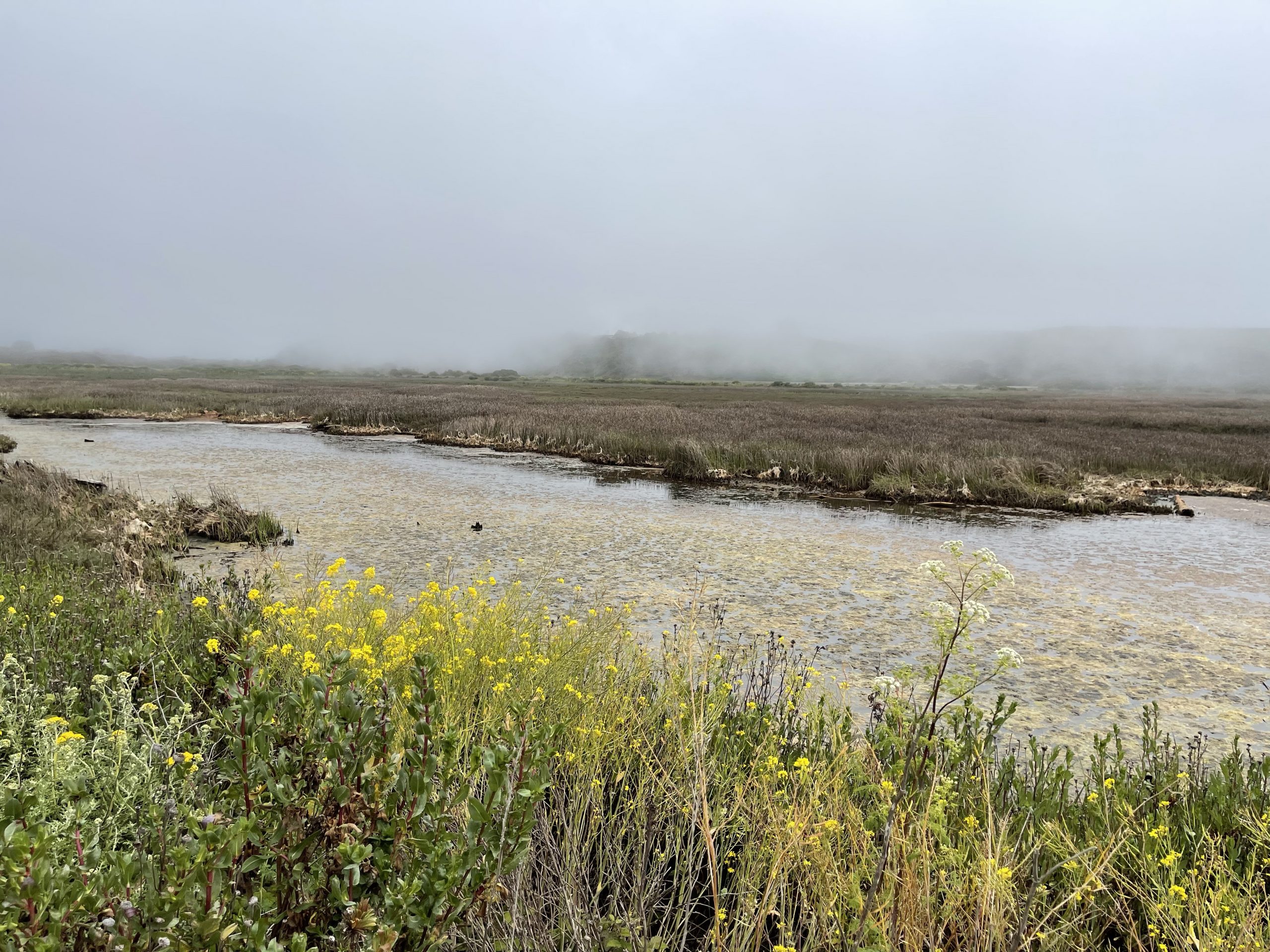 Im Mai verbinge ich einen Tag am Pazifik südlich von Half Moon Bay. Je mehr ich an der Küste nach Süden fahre, umso nebeliger wird es. Ich mache eine kleine Wanderung durch eine Sumpflandschaft direkt am Ozean. Die Lupinen stehen in voller Blüte. Immer wieder kommt der blaue Himmel hervor und verschwindet dann wieder. Durch den kalten Pazifik (ca 15 Grad) ist die Küste sehr nebelig.