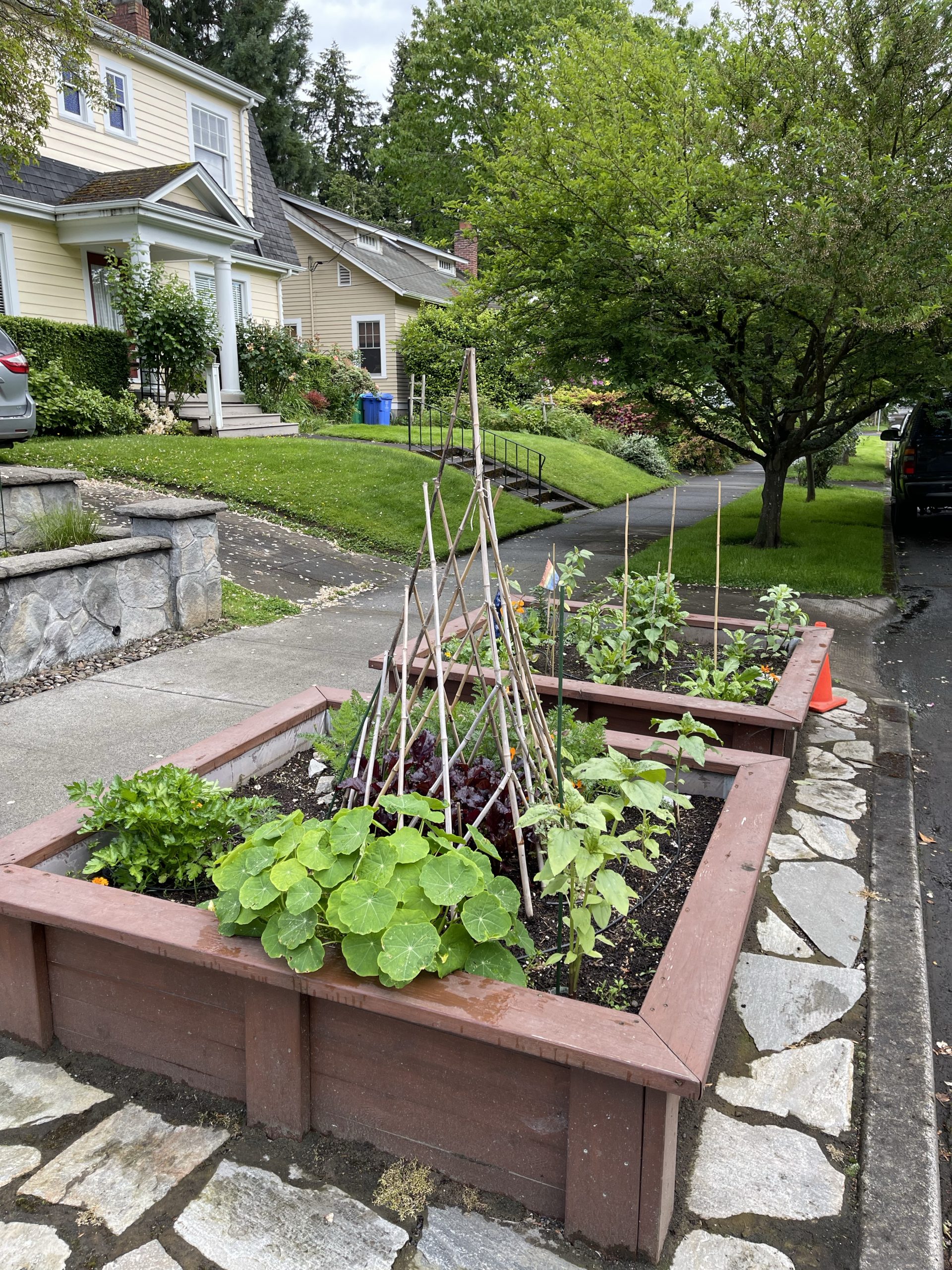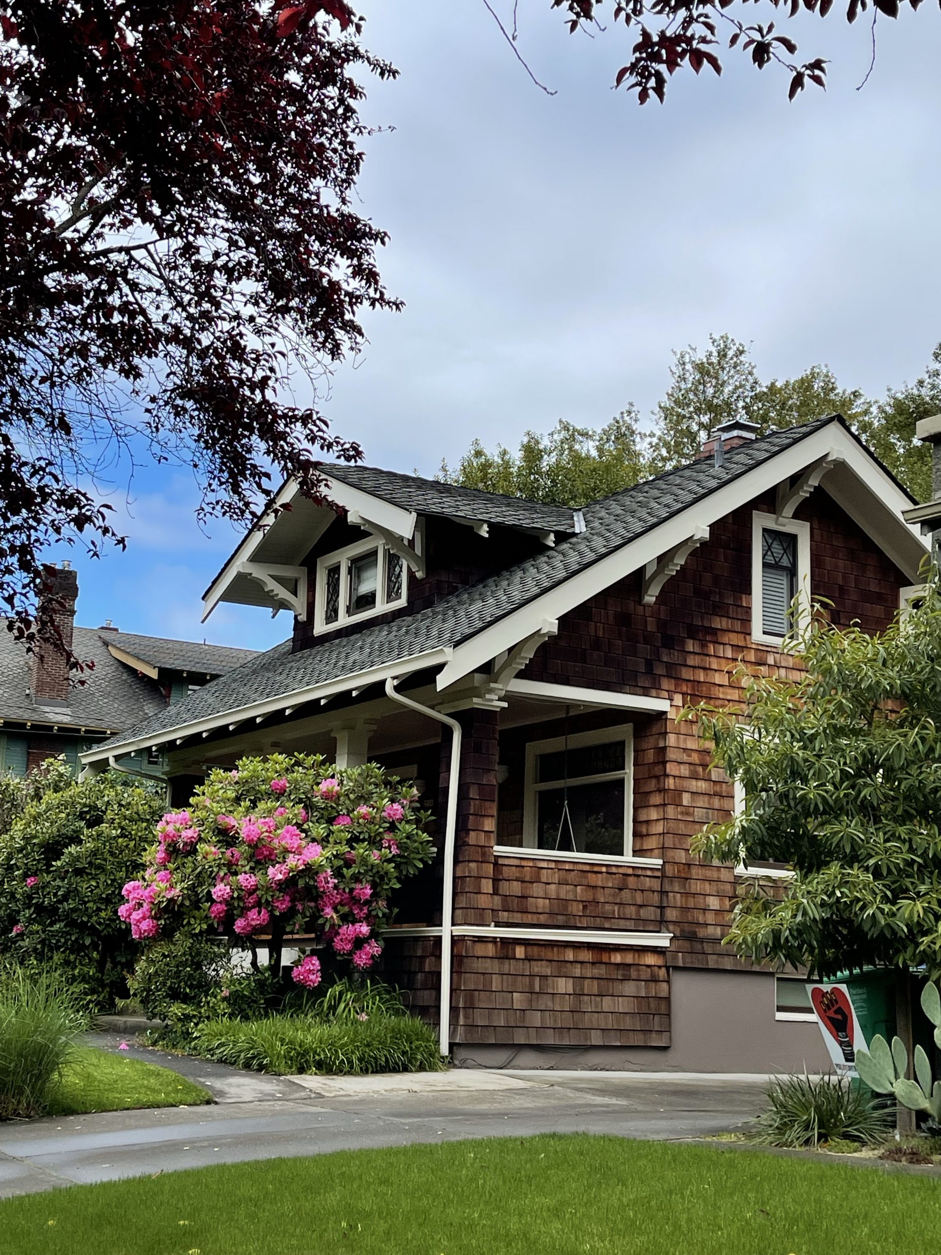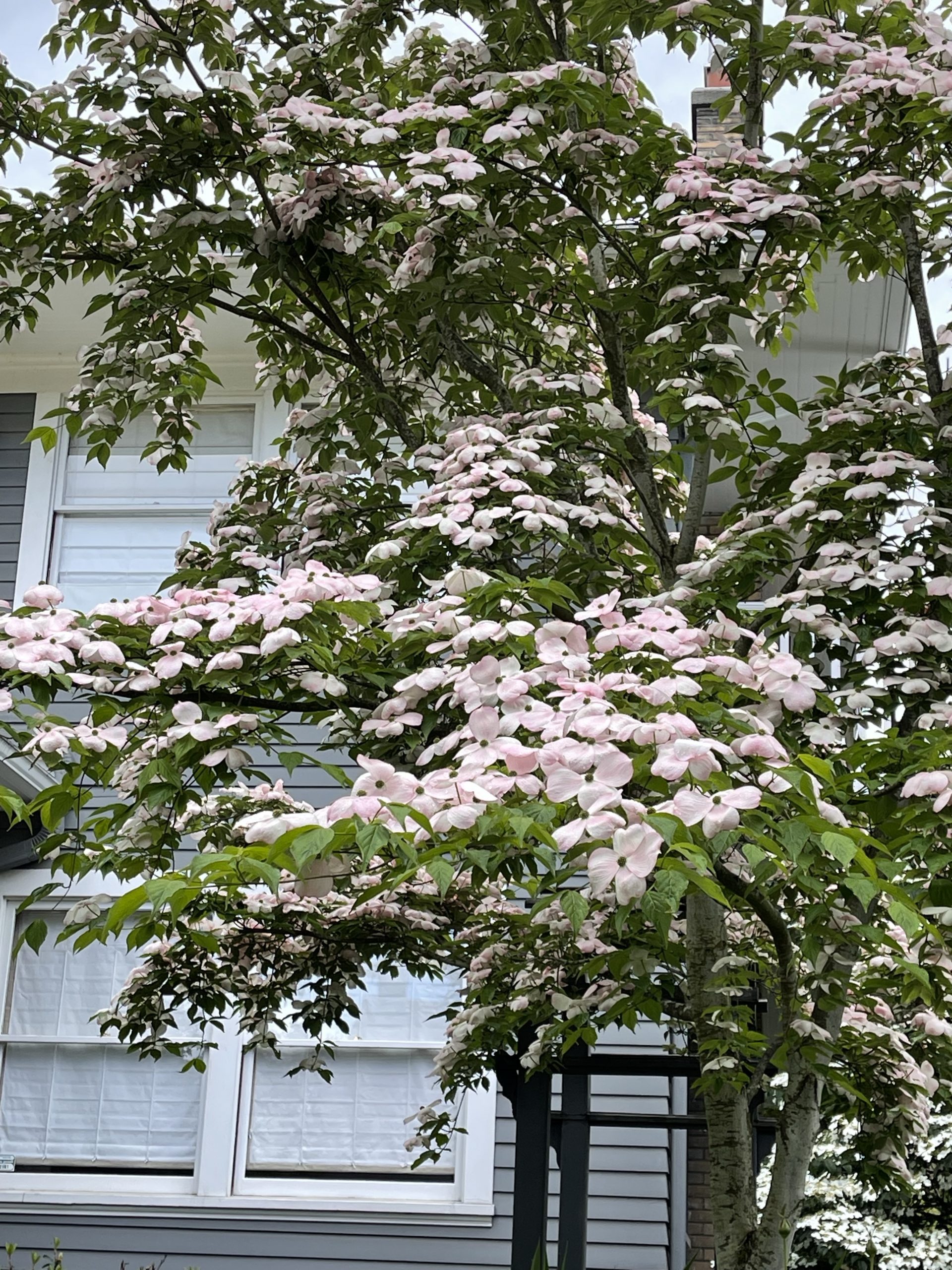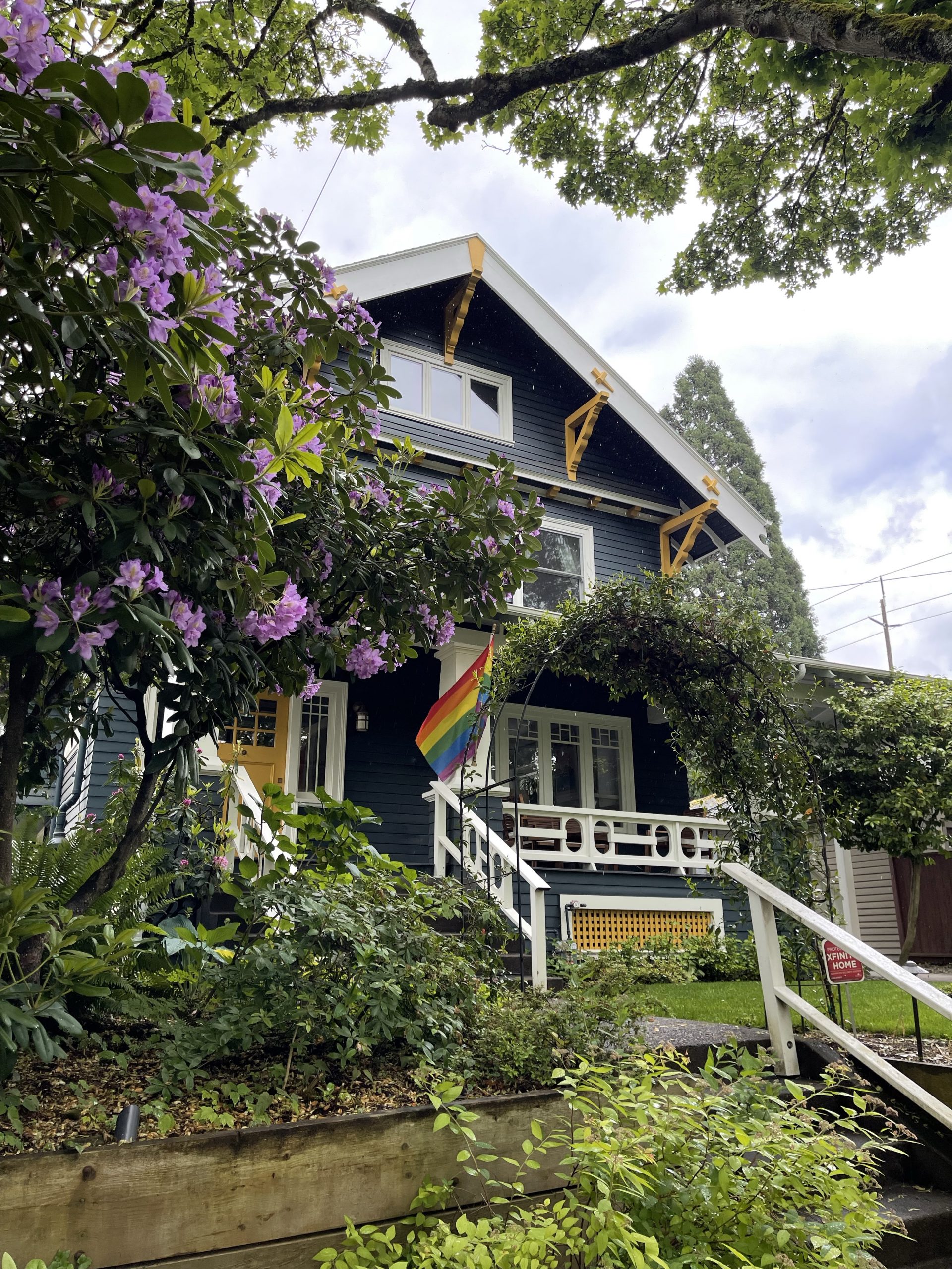 Über ein langes Wochenende im Mai (Memorial Day) bin ich in Portland bei meiner Cousine. Sie lebt dort mit Mann und 2 Töchtern, die beide studieren. Portland ist die Hauptstadt von Oregon, das im Süden an Kalifornien grenzt und im Norden an Washington. Dieses Frühjahr war extrem regenreich, deshalb ist alles so grün und blüht. Die Häuser und Gärten sind alle in einer sehr teuren und schönen Wohngegend von Portland. Leider gibt es inzwischen immer mehr Obdachlose, die in Zelten auf Grünflächen leben. Man sieht sie überall in der Stadt. Meine Cousine lebt in einem Haus mit Familie und Hund. Vor kurzem haben sie sich einen Wohnanhänger gekauft.