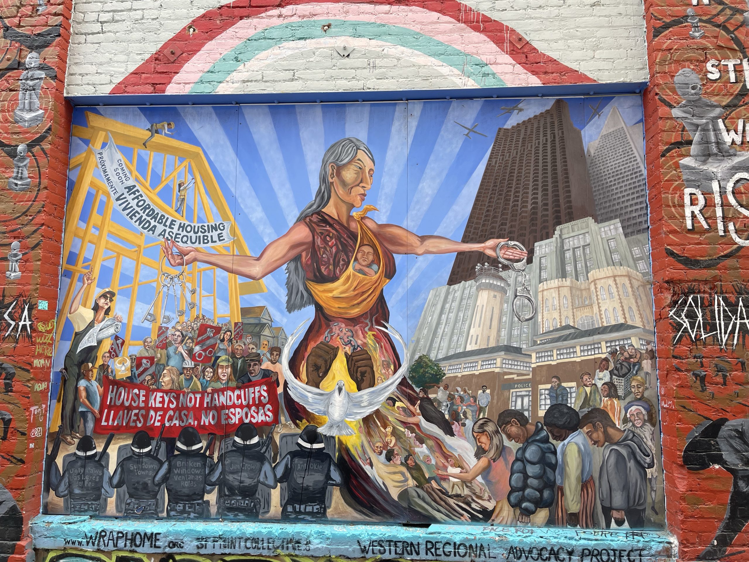 Der Mission District ist unter anderem bekannt für seine politischen Wandmalereien, auch Murales genannt.