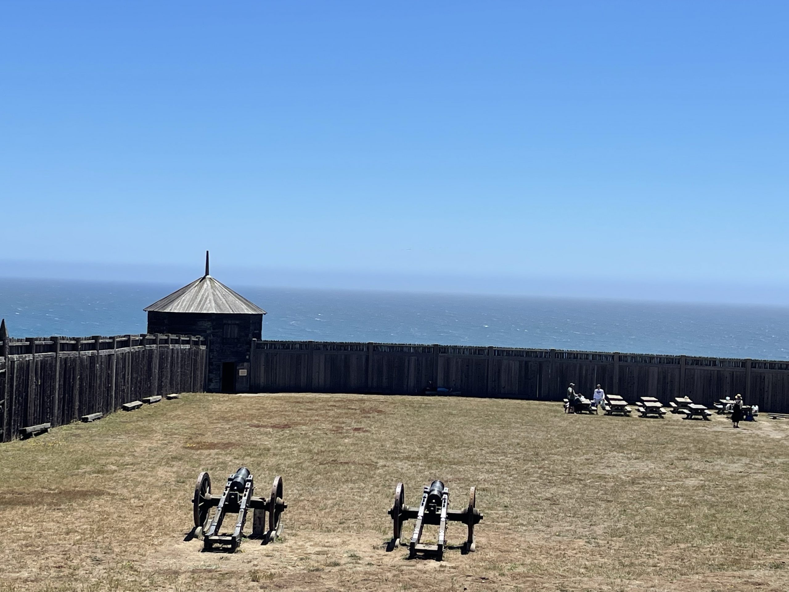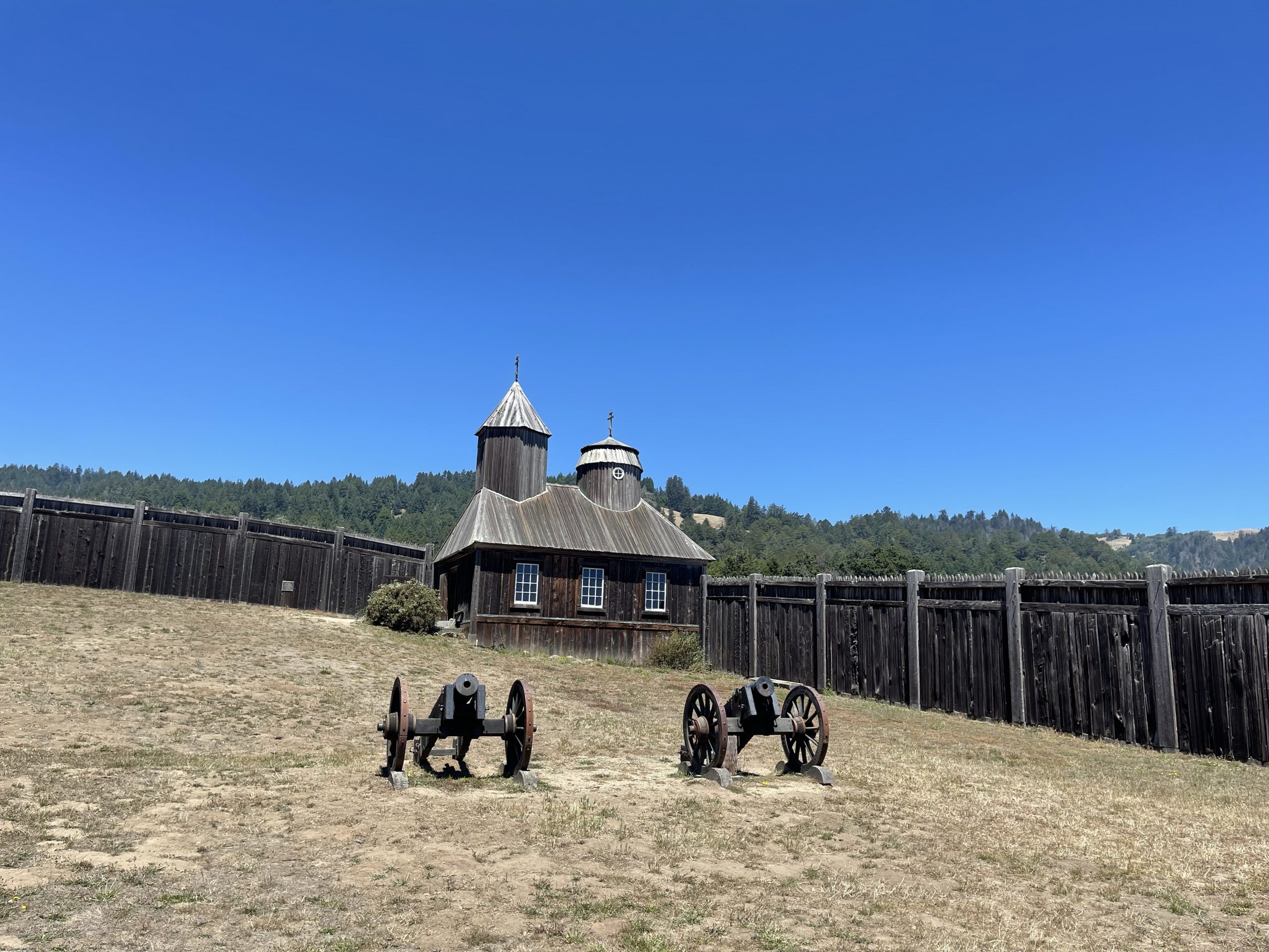 Die Russen kamen erstmalig 1742 über die Beringstraße nach Alaska und ließen sich auf der Insel Kodiak nieder. 1784 wurde dort das erste russische settlement gegründet. 1799 wurde die russion-american company gegründet. Das Handelgebiet der russian american company erweiterte sich Richtung Süden nach Kalifornien und Ureinwohner aus Alaska (Aleuten) wurden zum Seeooterfang eingesetzt. 1812 entschieden die Russen, eine Handelsniederlassung am Standort des Dorfes Medina zu gründen, nördlich von Bodega Bay. Der Name lautete Fort Ross in Anlehnung an Russland (Rossia). Das Fort bestand aus Blockhäusern und einer Kapelle. Neben dem Seeotterfang wurde Getreide angebaut, ebenso wurde dort Handwerk betrieben. Metina war ein indianisches Dorf. Die Einwohner lebten vom Fischfang, von den Muscheln (Abalone) und den Seepflanzen. Das Fort war somit multikulturell und bestand aus Russen, Aleuten (Ureinwohner aus Alaska) und den kalifornischen Indianern. Es bestand ca 40 Jahre.