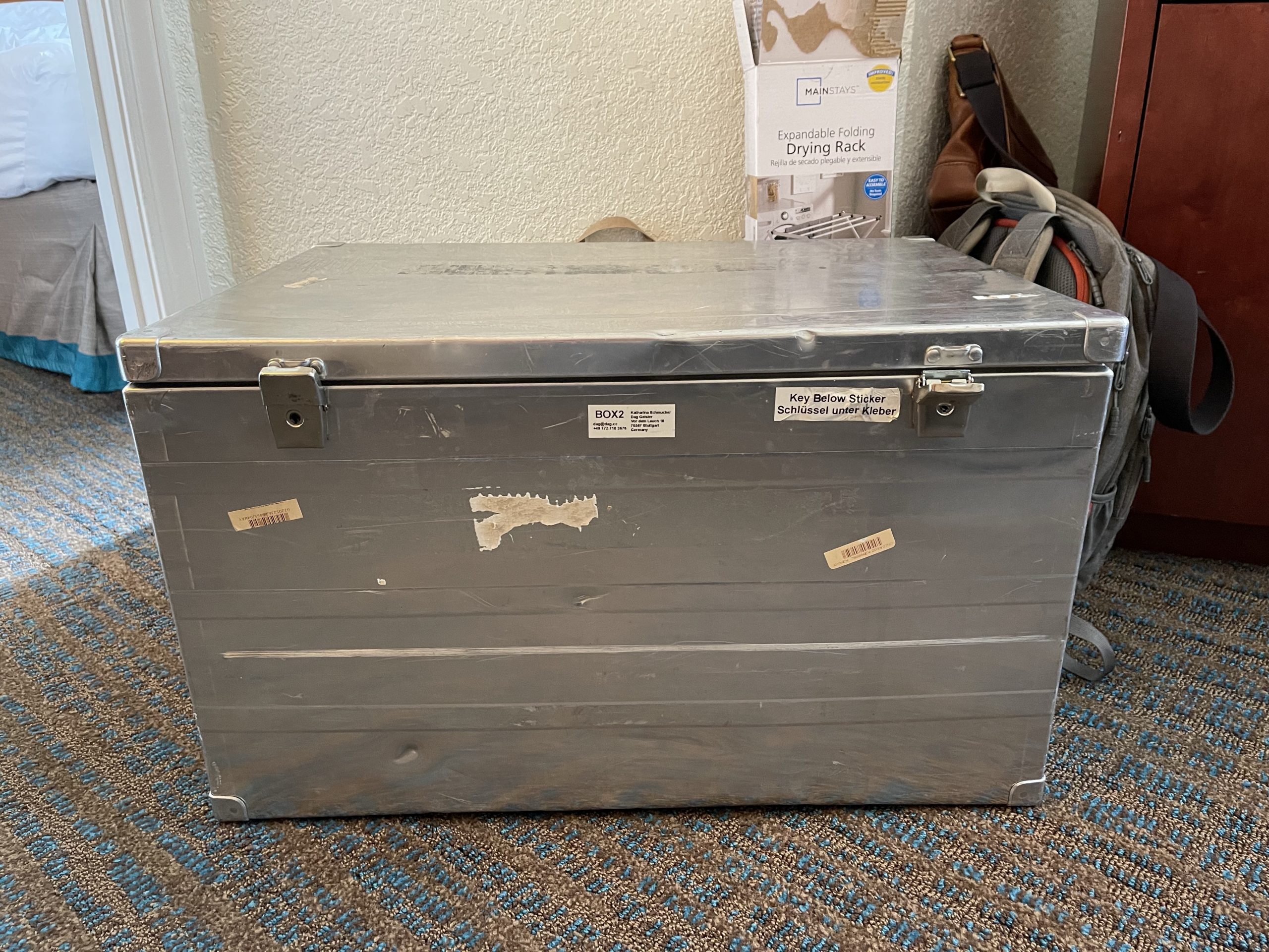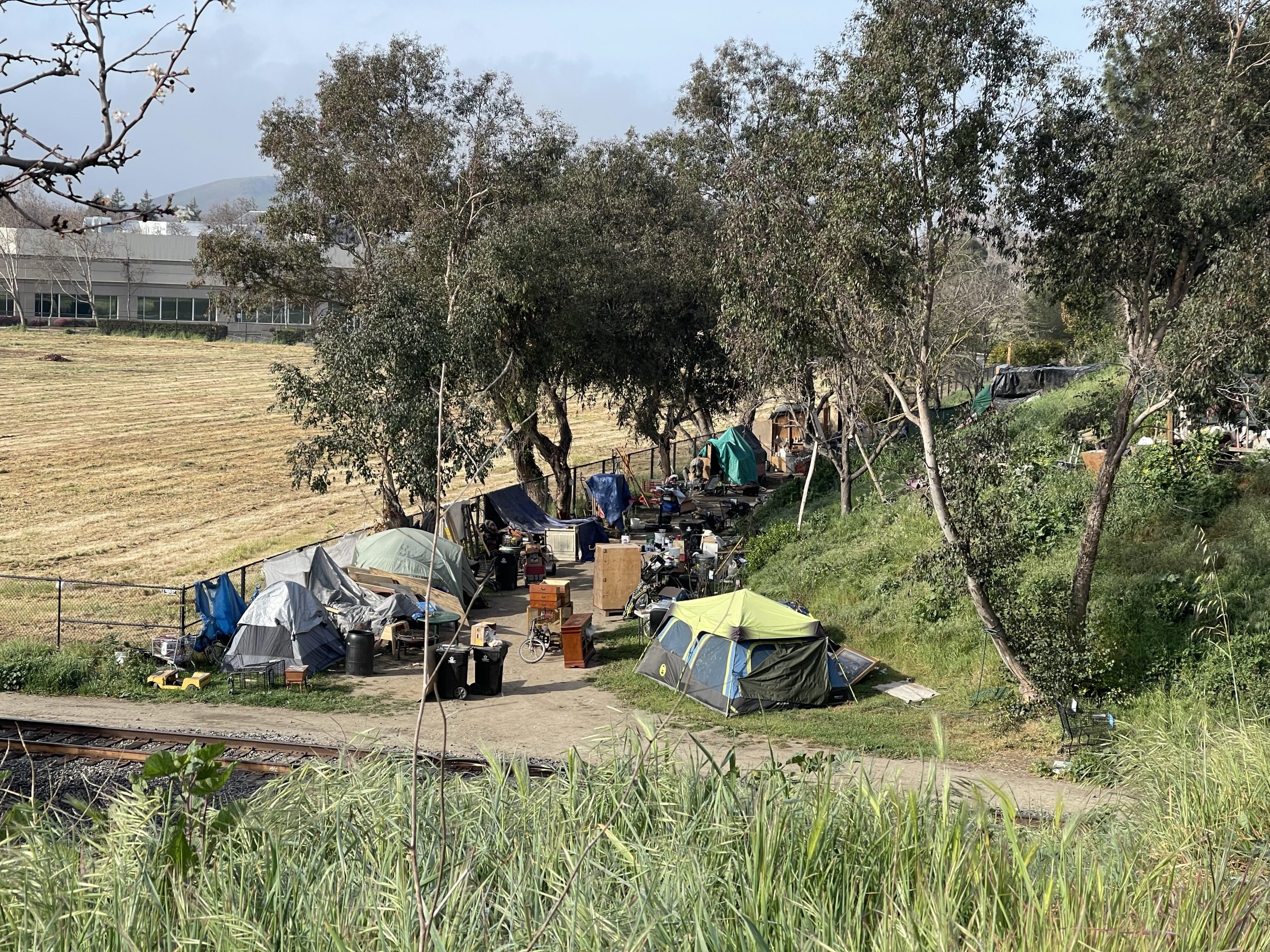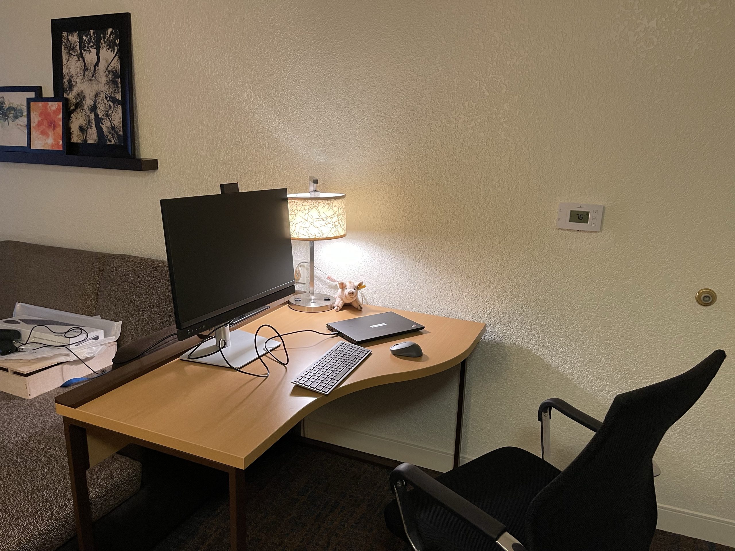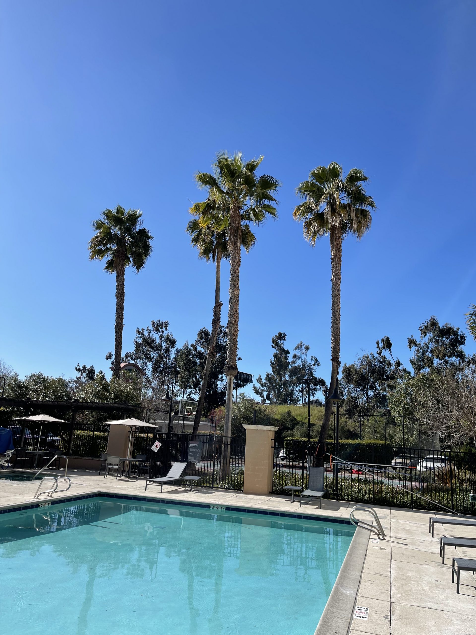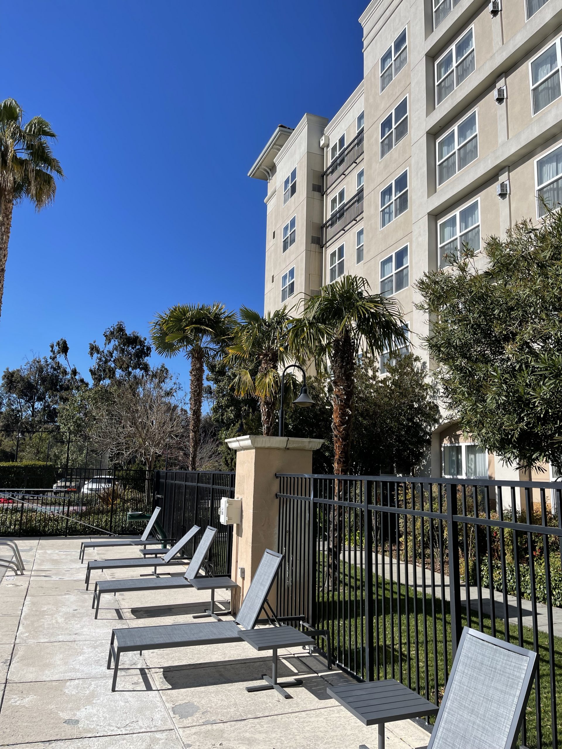 Ich bin die ersten 3 Wochen im Hotel Residence Inn von Marriott untergebracht. Das Hotel kenne ich noch von früheren Aufenthalten. Bis auf den Rezeptionsbereich hat sich nichts verändert. Das Hotel ist idyllisch direkt am Freeway gelegen und in Fußnähe zur Arbeit. Der Swimming Pool darf natürlich nicht fehlen und wird von den Familien am Wochenende genutzt. Es scheint Specials am Wochenende zu geben, so dass u.a. mexikanische Großfamilien anreisen. Ich habe ein kleines Studio mit Küche und Arbeitsplatz . Mein Arbeitstag beginnt meistens um 7 Uhr, um die kurze, gemeinsame Zeit mit Deutschland zu nutzen, dort ist es dann schon 16 Uhr. In einem der Alu-Reisekisten war der Bildschirm. Das Frühstück ist in der Lobby und ganz in Ordnung. Es gibt Plastikbesteck. Läuft man vom Hotel zur Firma, so wohnen unter der Eisenbahnbrücke, die man überquert, Obdachlose in Zelten. Das ist bedrückend.